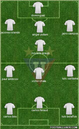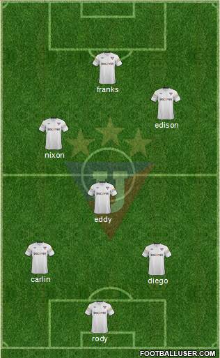 Bieler 16 · Reasco 13 · Damian Manso 21 · W.Araujo 15 · Urrutia 8 · Luis Bolaños 7 · Jairo Campos 23 · N.Araujo 2 · D.Calderon 14 · Calle 3 · Cevallos 1