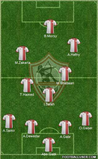 (ST) 17. Basem Morsi · (RAM) 9. Khaled Kamar · (LM) 11. Moamen Zakaria · (LCM) 15. Maarouf Youssef · (RCM) 4. Omar Gaber · (DMF) 18. Tarek Hamed · (RB) 7. Hazem Emam (C) · (LB) 27. Ahmed Samir · (RCB) 25. Ali Gabr · (LCB) 8. Mohamed Koffi · (GK) 1. Ahmed El-Shenawy