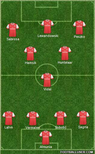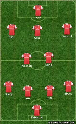 W.Szczesny · T.Vermaelen · J.Djourou · B.Sagna · G.Clichy · A. Song · F. Fabregas · S.Nasri · A.Arshavin · T.Walcott · R.Van Persie