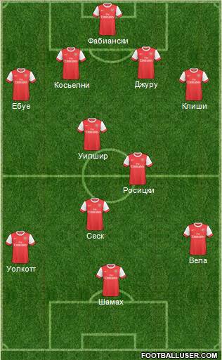 Robin Van Persie · Theo Walcott · Samir Nasri · Cesc Fabregas · Jack Wilshere · Alex Song · Gael Clichy · Bacary Sagna · Laurent Koscielny · Thomas Vermaelen · Wojciech Szczesny