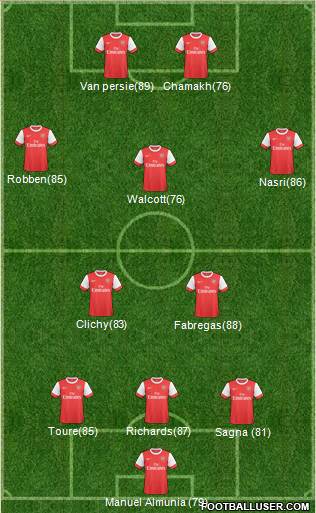 Szczesny · Vermalen · Squilacci · Clichy · Sagna · Denilson · Nasri · Fabregas · Arhavin · Walcott · Persie