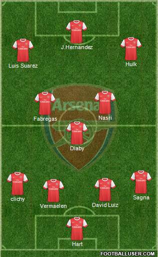 Szcsesny · Djourou · Koscielny · Sagna · Clichy · eboue · Wilshere · Bendtner · Arshavin · Fabregas · Nasri