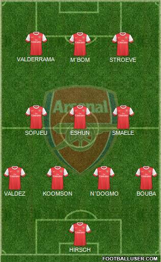 Van Persie · Bentdner · Fabregas · Arshavin · Nasri · Wilshere · Sagna · Clichy · Djourou · Koscienly · Almunia
