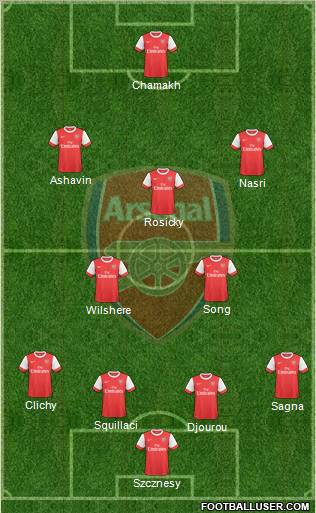 Almunia · Sagna · Djourou · Squillaci · Clichy · Koscienly · Fabregas · Walcott · Arshavin · Nasri · Wilshere · Van Persie · Bendtner