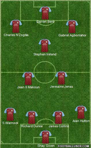 S.Given (35 · 80) · R.Dunne (32 · 78) · J.Collins (28 · 76) · M.Olsson (23 · 75) · A.Hutton (27 · 77) · F.Delph (22 · 74) · S.Ireland (25 · 78) · G.Agbonlahor (25 · 76) · C.N'Zogbia (25 · 79) · Fernandinho (26 · 76) · D.Bent (27 · 83)