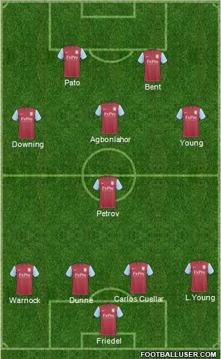 Sinan Bolat · Van der Wiel · Warnock · Collins · Boyata · Makoun · Bradley · S. Petrov · A. Young · Agbonlahor · Bent