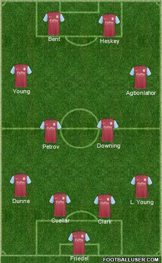 Friedel · Davies · Carlos Cuellar · Diego Ronan · Antonielli · Sidwell · Petrov · Agbonlahor · Young · Carew · Delfonueso