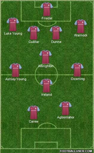 Friedel · Davies · Dunne · L. Young · Warnock · Sidwell · Downing · Ireland · A. Young · Agbonlahor · Carew