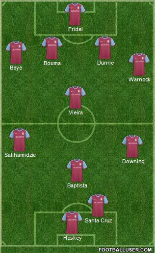 1. Friedel · 29. Coliins · 5. Dunne · 23. Beye · 3. Warnock · 19. Petrov · 12. Albrighton · 7. A.Young · 9. Ireland · 11. Agbonlahor · 10. Carew