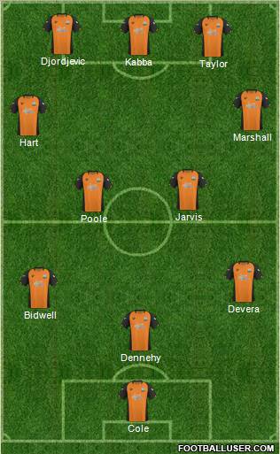 Шей Гивен · Карлос Куэльяр · Ричард Данн · Алан Хаттон · Стивен Уорнок · Фабиан Делф · Джермейн Дженас · Стилян Петров · Шарль Н’Зогбия · Габриэль Агбонлахор · Эмиль Хески