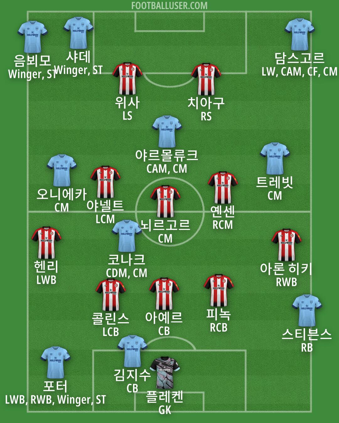 플레컨 · 카요데 · 음뵈모 · 위사 · 샤데 · 담스고르 · 뇌르고르 · 히키 · 콜린스 · 피녹 · 치아구 · 반덴베르흐 · 파비우 · 옌센 · 헨리 · 야넬트 · 엠레 코나크 · 야르몰류크 · 올라키그베 · 다실바