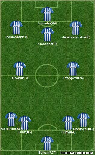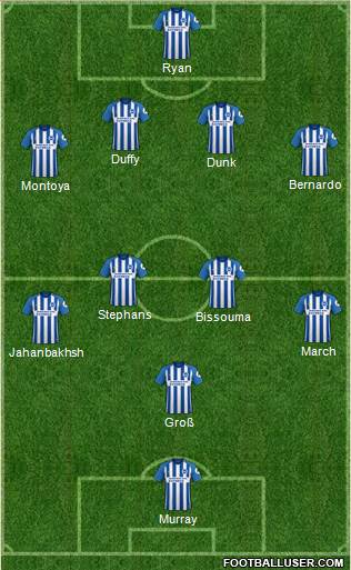 Ryan · Dunk · Duffy · Bernardo · Montoya · Bissouma · Propper · Trossard · Jahanbakhsh · GroB · Andone