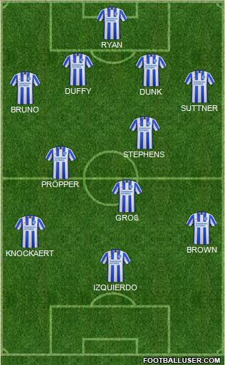 Ryan · Suttner · Duffy · Dunk · Schelotto · Izquierdo · Stephens · Pröpper · Knockaert · Gross · Norman Conquest