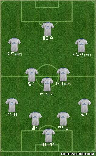에더리지 · 밤바 · 모리슨 · 망가 · 커닝햄 · 군나르손 · 랄스 · 머피 (67') · 호일렛 (74') · 워드 (86') · 패터슨