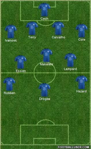 Eden Hazard · Gianfranco Zola · Claude Makélélé · Didier Drogba · N'Golo Kanté · Frank Lampard · Petr Čech · Ashley Cole · César Azpilicueta · John Terry · Ricardo Carvalho · José Mourinho