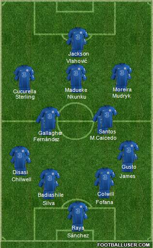 Sanchez · Chalobah · Tosin · James · Caicedo · Cucurella · Dewsbury-Hall · Palmer · Jackson · Neto · Madueke
