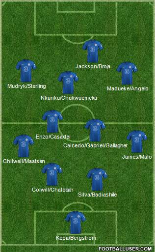 Sanchez · Colwill · Anselmino · Araujo · Caicedo · Fernandez · Palmer · Dorgu · Bynoe-Gittens · Madueke · Jackson