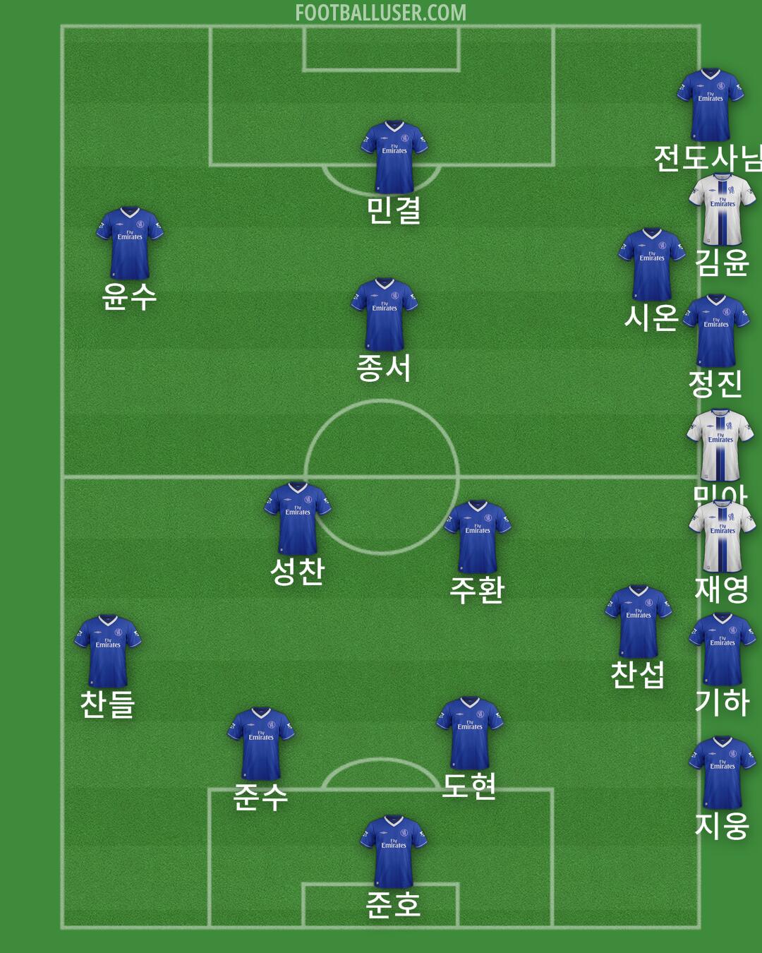 Cech (Courtois) · Ivanovic (Azpilicueta) · Cole (LeSaux) · Terry (Thiago Silva) · Carvalho (Desailly) · Kanté (Makélélé) · Lampard (Fabregas) · Hazard (Duff) · Palmer (Willian) · Zola (Hasselbaink) · Drogba (Diego Costa)