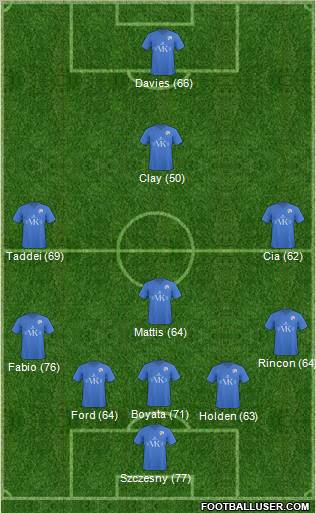 Szczesny (77) · Holden (63) · Ford (64) · Boyata (71) · Fabio (76) · Rincon (64) · Mattis (64) · Taddei (69) · Cia (62) · Clay (50) · Davies (66)