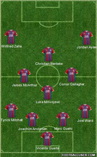 Johnstone/Whitworth/Matthews · Guéhi ¿Greaves? · Andersen/Richards · Mitchell/Adaramola · ¿Wan-Bissaka? Ward · Doucouré/Ahamada/Hughes · Lerma/Schlupp · Eze/Matheus França · ¿Hudson-Odoi? Ebiowei · Olise ¿Shoretire? Rak-Sakyi · Edouard/Mateta/J.Ayew