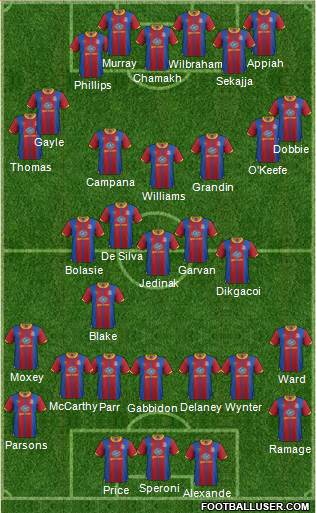 Speroni · Delaney · Mariappa · Moxey · Ward · Jedinak · Puncheon · O'Keefe · Chamakh · Kebe · Jerome