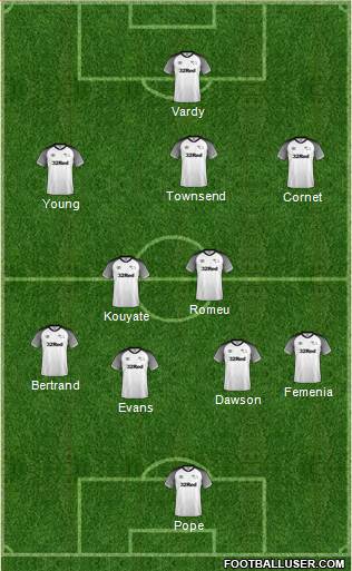 Pope · Evans · Dawson · Femenia · Bertrand · Kouyate · Romeu · Young · Cornet · Townsend · Vardy