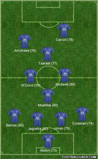 T.Howard · J.Heitinga · S.Distin · L.Baines · T.Hibbert · M.Fellaini · Mikel Arteta · D.Bilyaletdinov · S.Coleman · T.Cahill · L.Saha