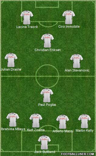 Schwarzer · Hughes · Hangeland · Kelly · Riise · Diarra · Sidwell · Kacaniklic · Duff · Berbatov · Petric