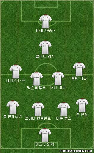 Mark Schwarzer · Brede Hangeland · Aaron Hughes · Chris Baird · Paul Konchesky · Dickson Etuhu · Danny Murphy · Simon Davies · Damien Duff · Zoltan Gera · Bobby Zamora