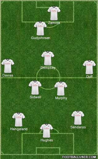 8.A.Johnson/30.Dembele · 25.B.Zamora/22.Gudjohnsen · 23.Dempsey/27.Greening · 11.Gera/16.D.Duff · 13.D.Murphy/20.Etuhu · 7.Sidwell/29.Davies · 18.Hughes/2.S.Kelly · 3.Salcido/6.Baird · 5.Hangeland/4.Pantsil · 14.Senderos/32.Halliche · 1.Schwarzer/12.Stockdale