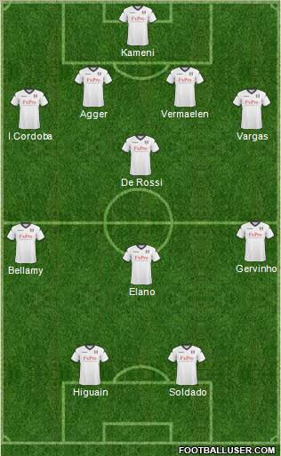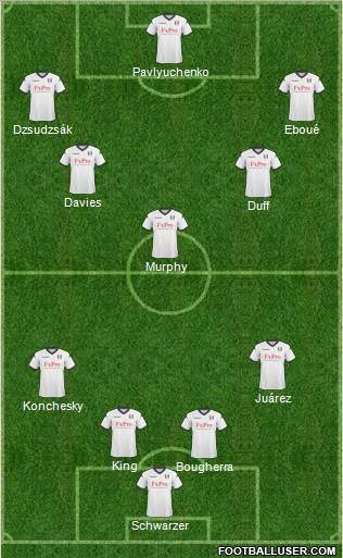 Schwarcer · Hughes · Hangeland · Salcido · Paintsil · Murphy · Sidwel · Duff · Dempsey · Johnson · Dembele