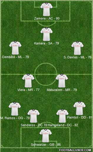 Schwarzer · Huges · Hangeland · Pantsil · Salcido · Sidwell · Murphy · Dempsey · Duff · Dembele · Johnson