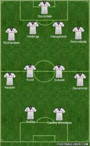 Stockdale · Hangeland · Amorebieta · Riise · Riether · Diarra · Parker · Holtby · Sidwell · Rodallega · Mitroglou