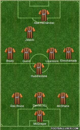 McGregor · Álex Bruce · McShane · Davies (C) · Huddlestone · Quinn · Livermore · Brady · Elmohamady · Jelavic · Abel Hernández