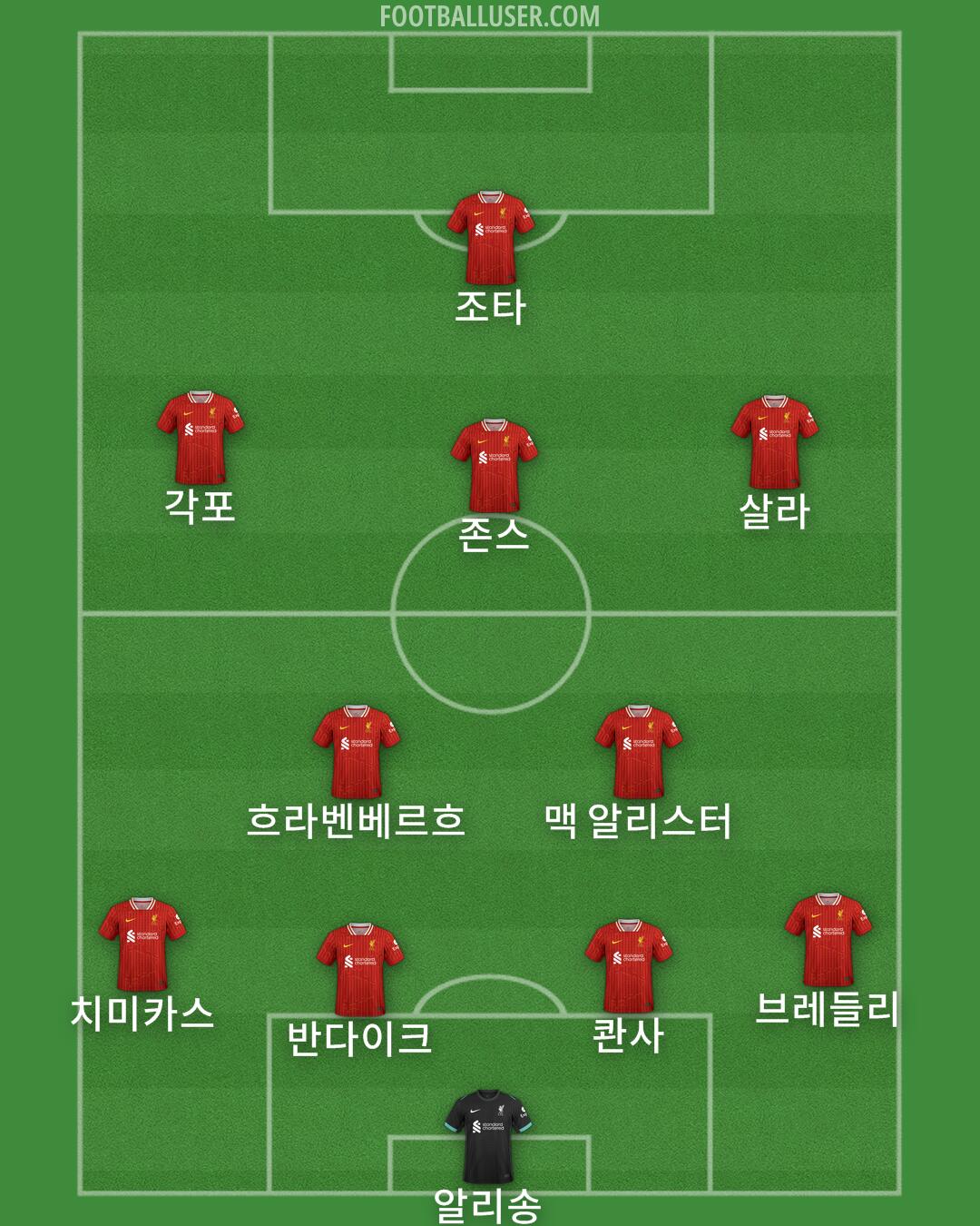 Wirtz · Salah · A. Becker · Van Dijk · Konate · Gravenberch · Frimpong · Kerkez · Isak · Mac Allistor · Ekitike