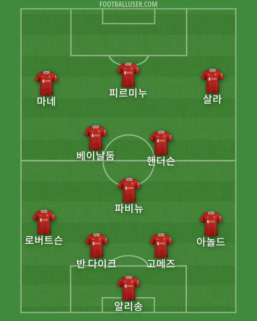 Alison / Woodman (Mamardashvili) · Frimpong (Bradley) · Konate (Leoni) · van Dijk (Gomez) · Kerkez (Robertson) · Gravenberch (Endo) · MacAlister (Jones) · Wirtz (Szoboszlai) · Salah (Chiesa) · Gakpo (Ngumoha) · Isak (Ekitike)