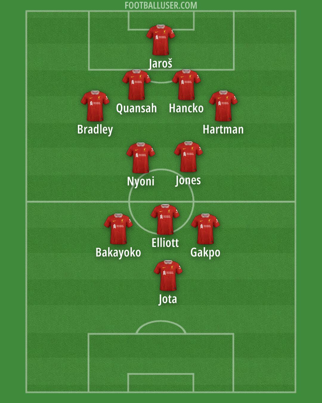 A. Becker · J. Frimpong · I. Konaté · V. Van Dijk · M. Kerkez · R. Gravenberch · D. Szoboszlai · F. Wirtz · M. Salah · C. Gakpo · H. Ekitike