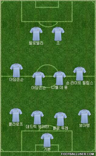 Joe Hart · Vincent Kompany · Aleks Kolarov · Derrick Boyata · Yaya Toure · Nigel De Jong · Adam Johnson · David Silva · Mario Ballotelli · James Milner · Edin Dzeko