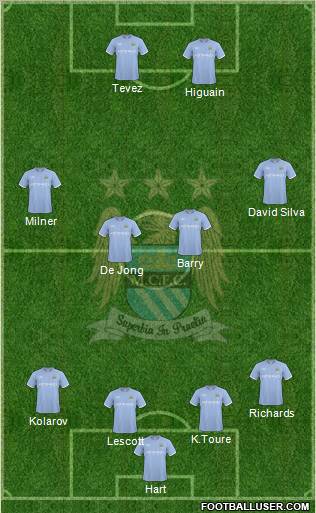 Hart · Kolo · Kompany · Micah · Kolarov · Barry · Milner · Yaya · Silva · Tevez · Dzeko
