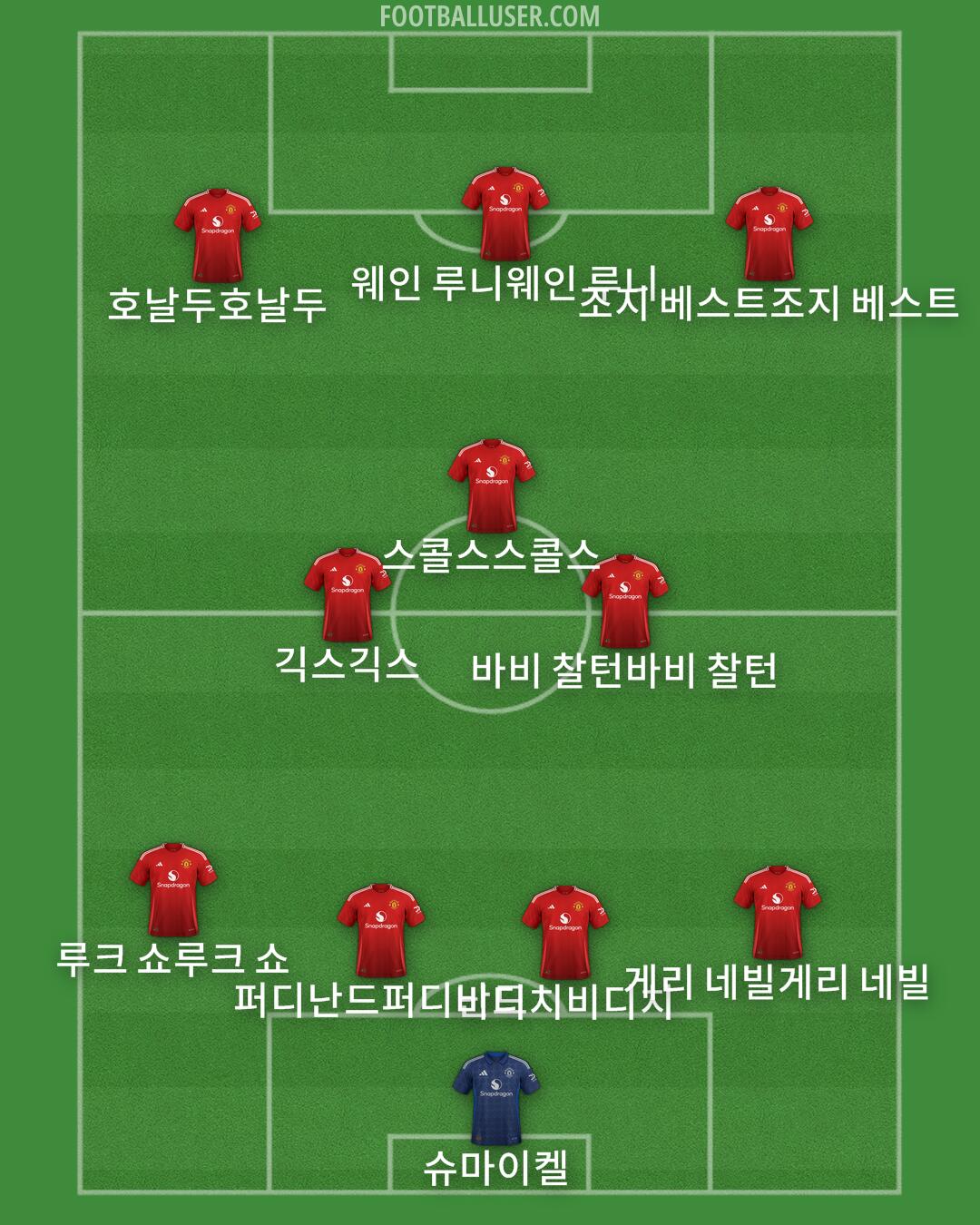 호일룬 · 브루노 · 가르나초 · 도르구 · 달롯 · 카세미루 · 우가르테 · 요로 · 매과이어 · 마즈라위 · 오나나
