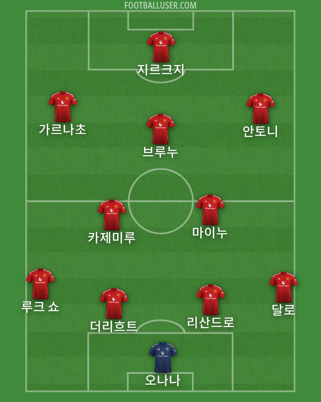 V.Osimhen ( C.Obi ) · M. Cunha ( M.Mount ) · B.Mbeumo ( J. Zirkzee ) · P. Dorgu ( D. Leon ) · B.Fernandes ( K.Mainoo ) · F.Nmecha ( Casemiro/M. Ugarte ) · Amad ( D.Dalot ) · A.Heaven (L. Shaw/L.Martinez ) · M. De Ligt ( H.Maguire ) · L.Yoro ( N. Mazraoui ) · S.Lammens ( A. Onana )
