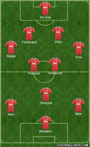 Wayne Rooney · Ole Gunnar Solskjær · Henrik Larsson · Louis Saha · Ryan Giggs · Cristiano Ronaldo · Ji Sung Park · Alan Smith · Michael Carrick · Paul Scholes · Darren Fletcher · Kieran Richardson · Patrice Evra · Gary Neville · Gabriel Ivan Heinze · Wes Brown · Rio Ferdinand · Nemanja Vidic · Mickaël Silvestre · John O'Shea · Edwin Van der Sar, ...