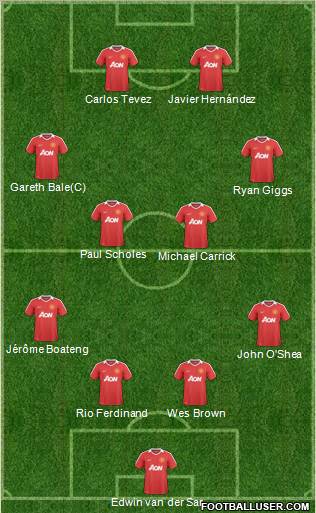 van de saar (rob markie) · sain massey (barbara parn) · evra (brian whiteside) · ferdinand (alan womack) · vidic (phil downes) · jonathan ling (ji sung park) · scholes (nic wood) · Nani (annette pendry) · ryan giggs (andy fisher) · rooney (terry mullins) · hernandez (greame hill)