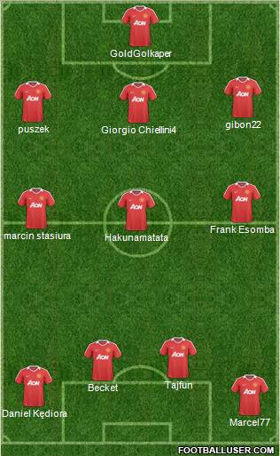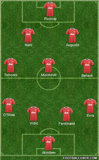 Van Der Sar · Vidic · Ferdinand · Rafael · Evra · Fletcher · Valencia · Park · Nani · Hernandez · Rooney