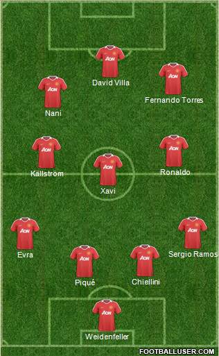 N.Vidic · P.Mertesacker · P.Evra · Rafael · D.Fletcher · W.Sneijder · J.Pastore · A.Valencia · L.Nani · W.Rooney