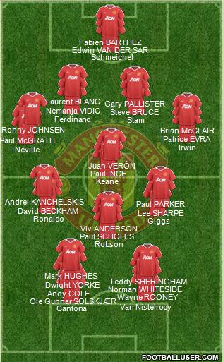 برباتوف · رونى · فالينسيا · نانى · شنايدر · سكولز · افرا · رافائيل · فرديناند · فديتش · فان در سار