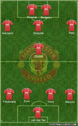 1.반데사르 · 5.퍼디난드 · 15.비디치 · 3.에브라 · 21.하파엘 · 24.플레쳐 · 16.캐릭 · 13.박지성 · 17.나니 · 10.루니 · 9.베르바토프