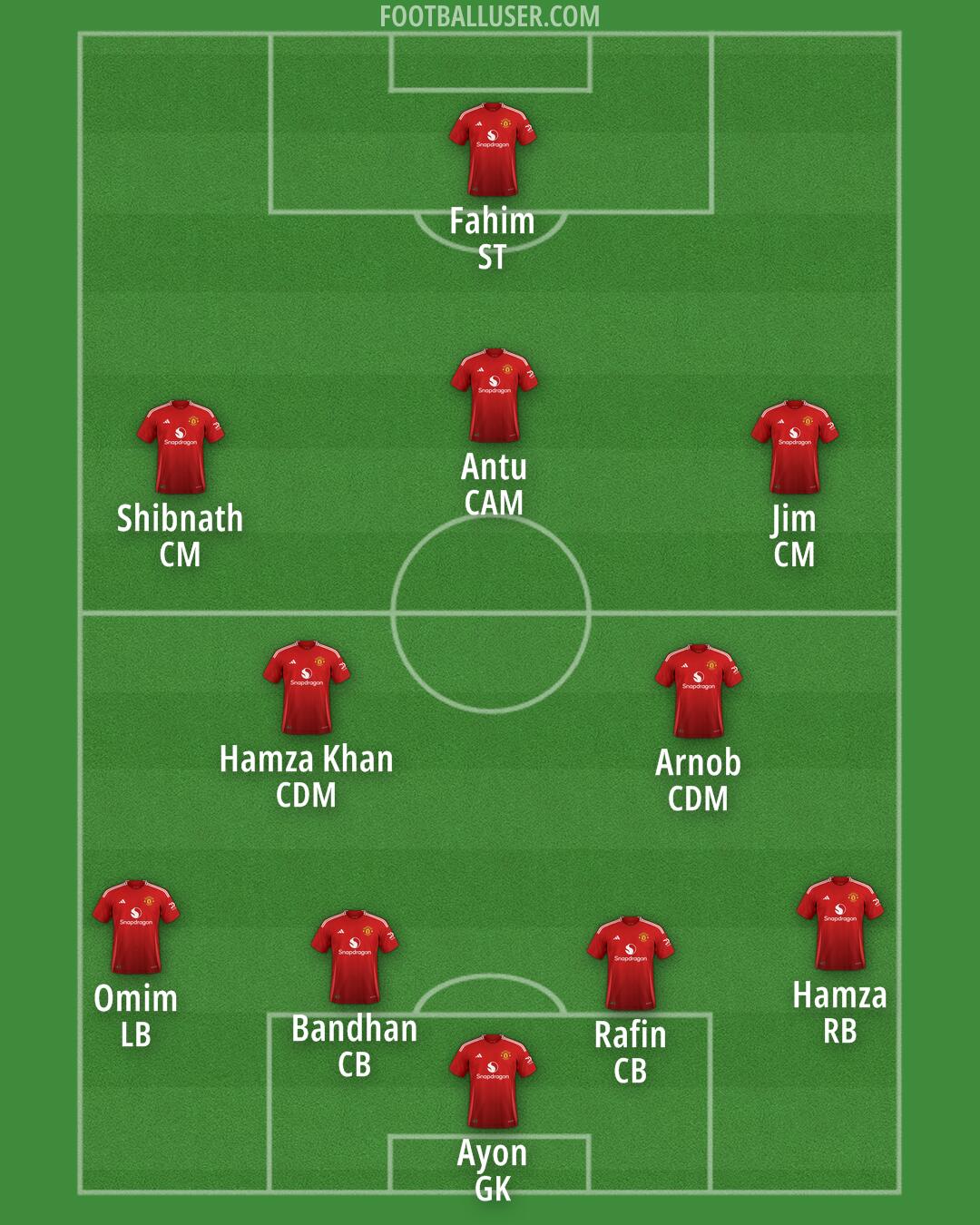 Mateta · Mbeumo · Amad · Cunha · Dorgu · B. Fernandes · Onana · Heaven · Yoro · Dalot · Lammens