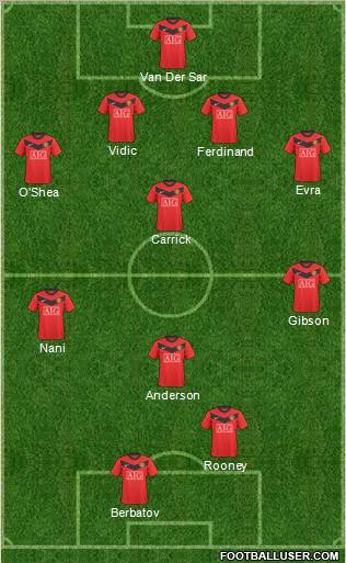 Van Der Sar · Vidic · Ferdinand · O'Shea · Evra · Giggs · Fletcher · Valencia · Carrick · Berbatov · Rooney