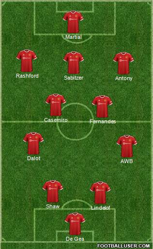 Rashford 347′ (5G [4S 1G 0A]) · Diallo 338′ (5G [6S 1G 1A]) · Bruno 439′ (5G [17S 0G 1A]) · Eriksen 153′ (3G [0S 0G 0A]) · Zirkzee 311′ (5G [8S 1G 0A]) · Ugrate 31′ (2G [0S 0G 0A]) · Mazraoui 425′ (5G [4S 0G 1A]) · Dalot 450′ (5G [1S 0G 1A]) · Lisandro 437′ (5G [2S 0G 0A]) · Deligt 266′ (5G [5S 1G 0A]) · Onana